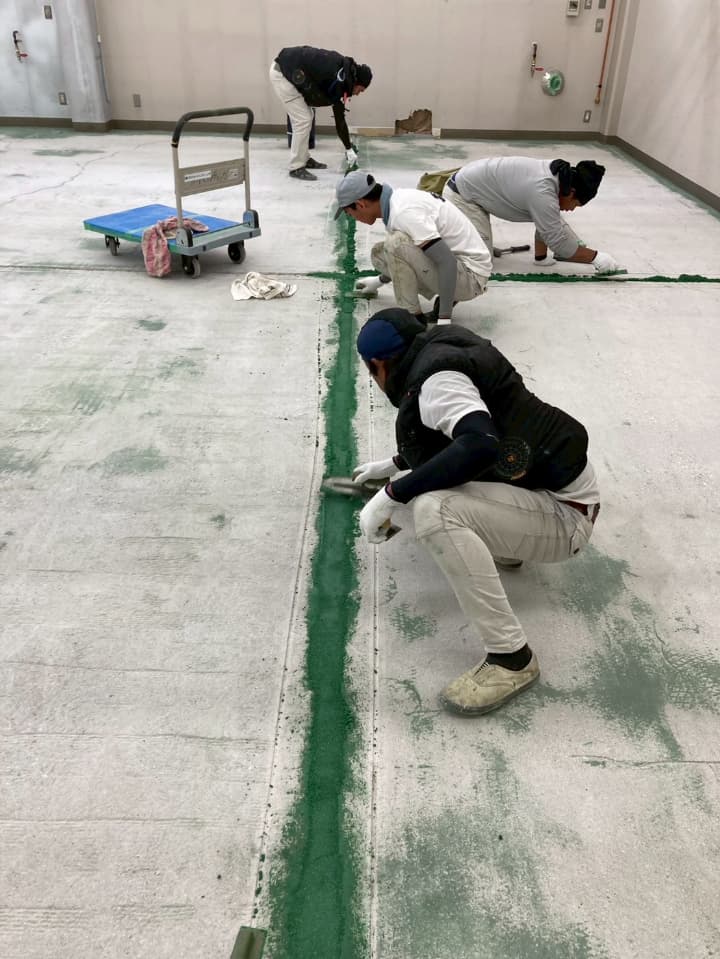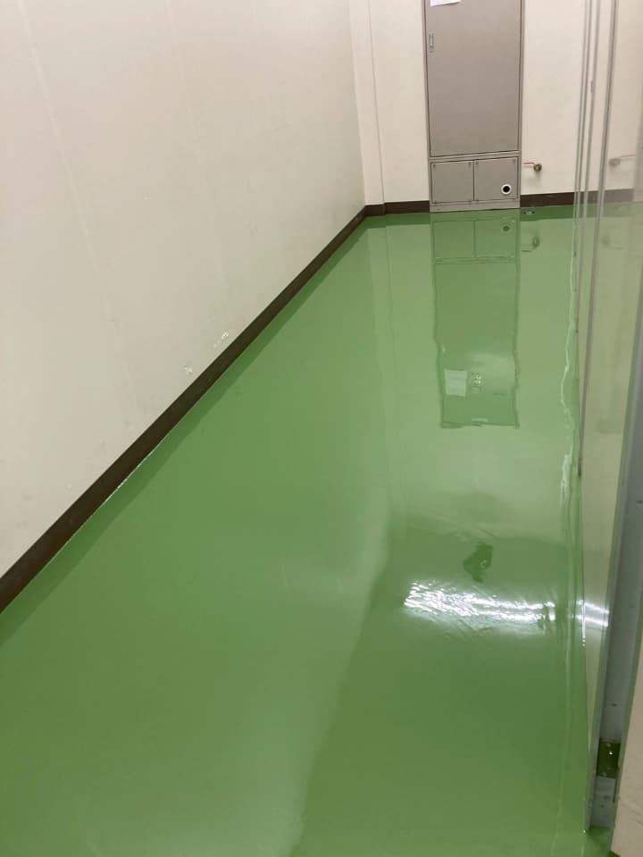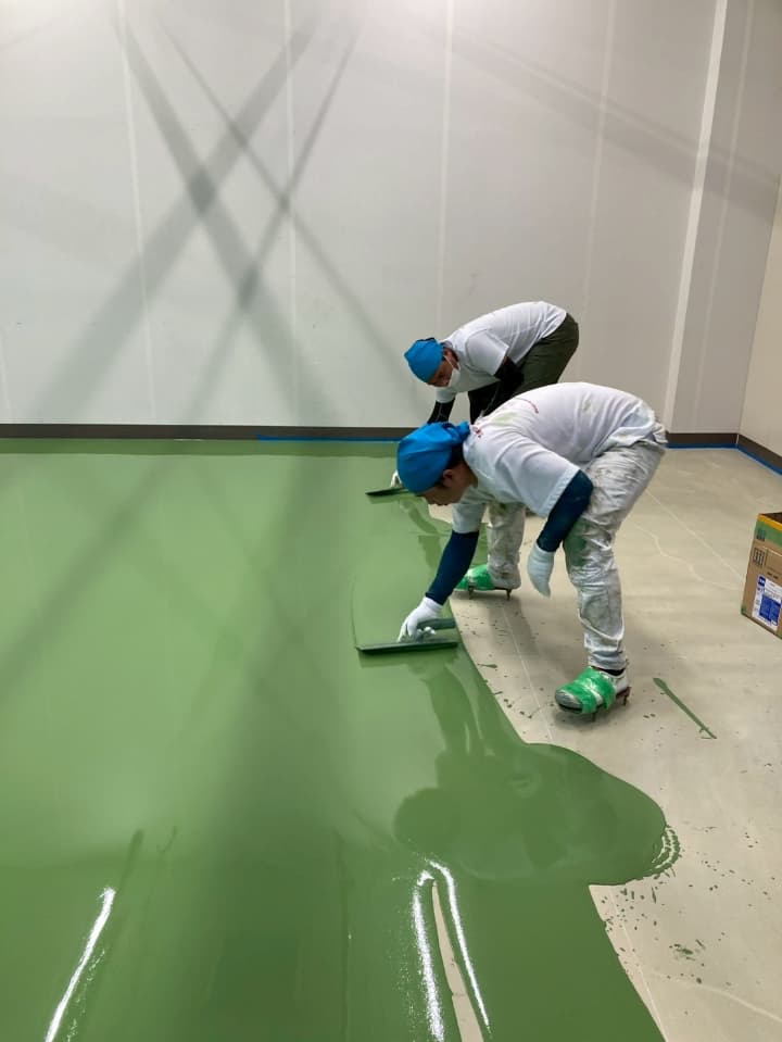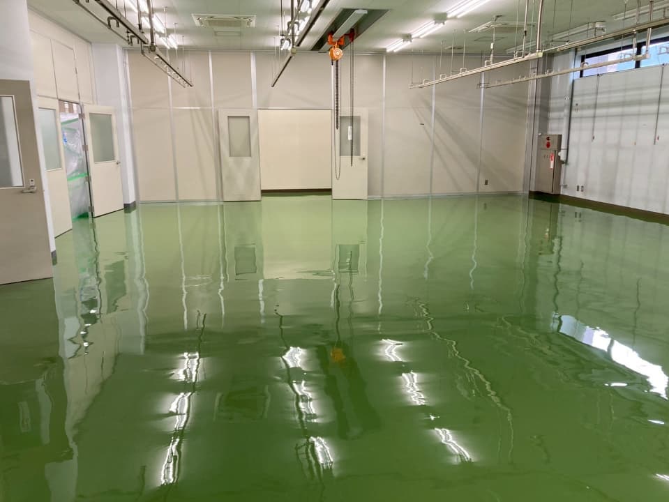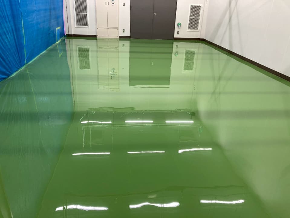 長野県の倉庫様にて、床改修工事を行いました。仕上げには「TSライトグリーン」を採用しました。