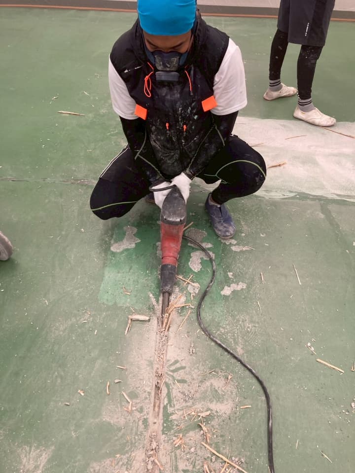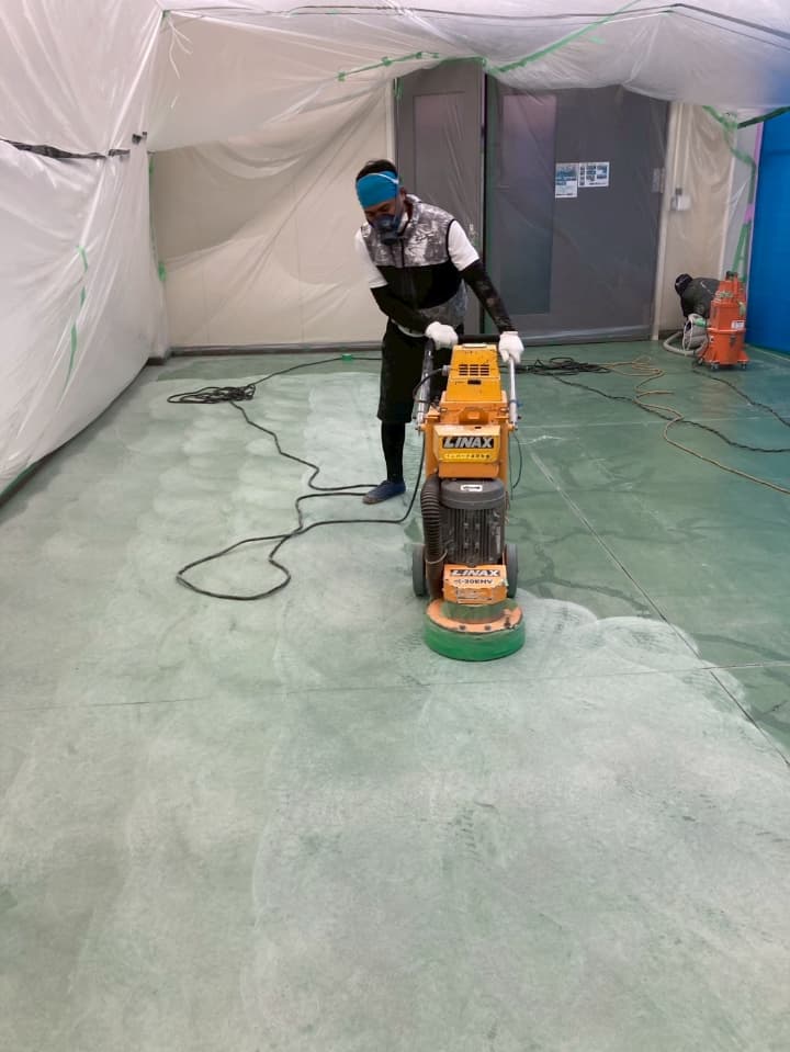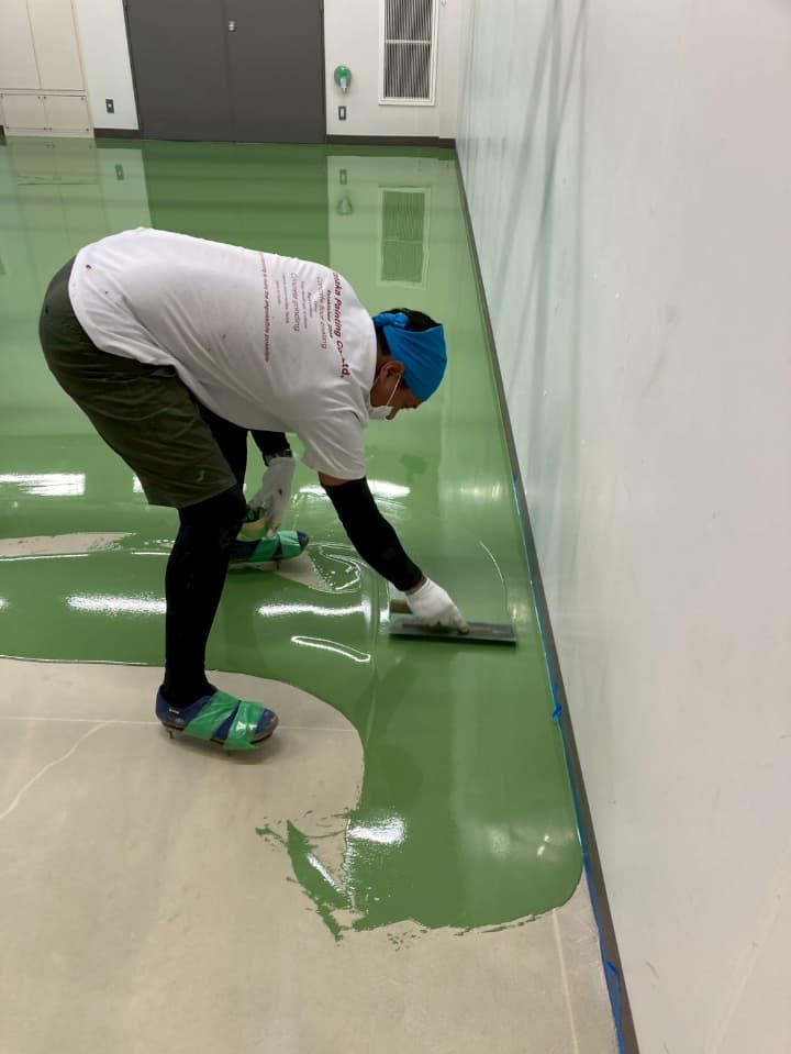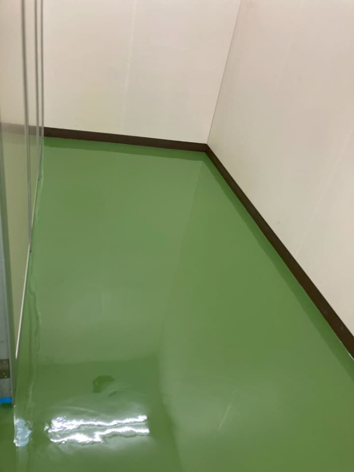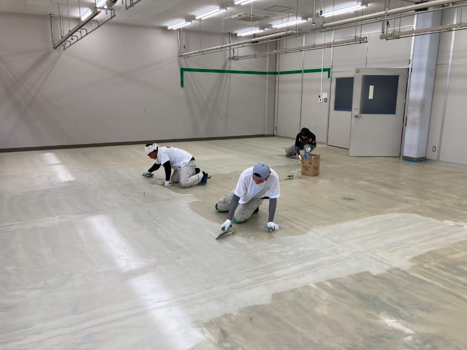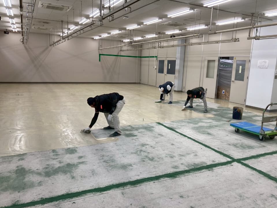長野県の倉庫様にて、床改修工事を行いました。仕上げには「TSライトグリーン」を採用しました。