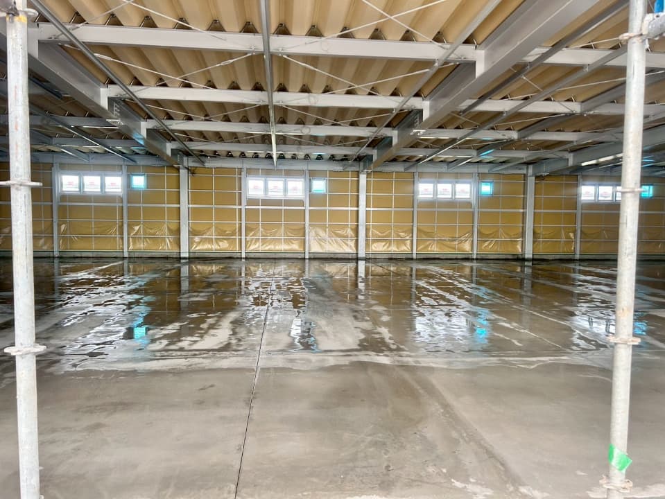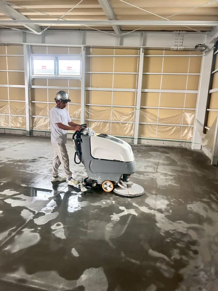 群馬県にある物流倉庫様にて、コンクリート表面強化剤「セラミキュア」を用いた工法で、塗り床工事を実施いたしました。