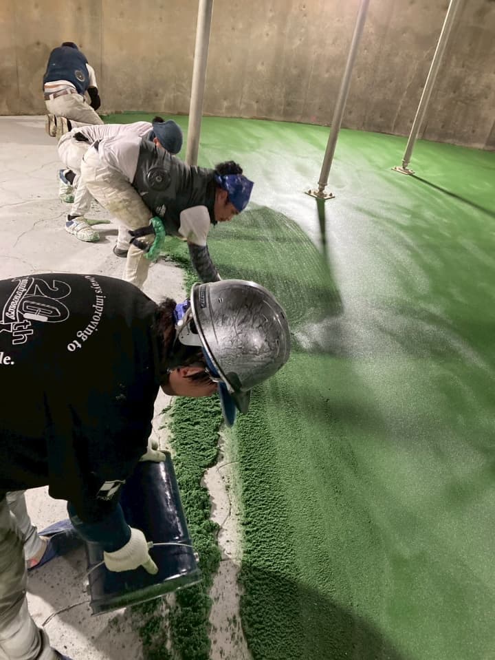 群馬県の飲料工場様にて、ミルクリートMM グリーン仕上げを行いました。