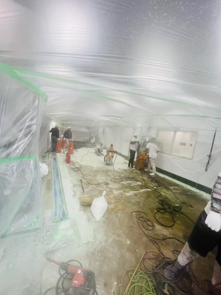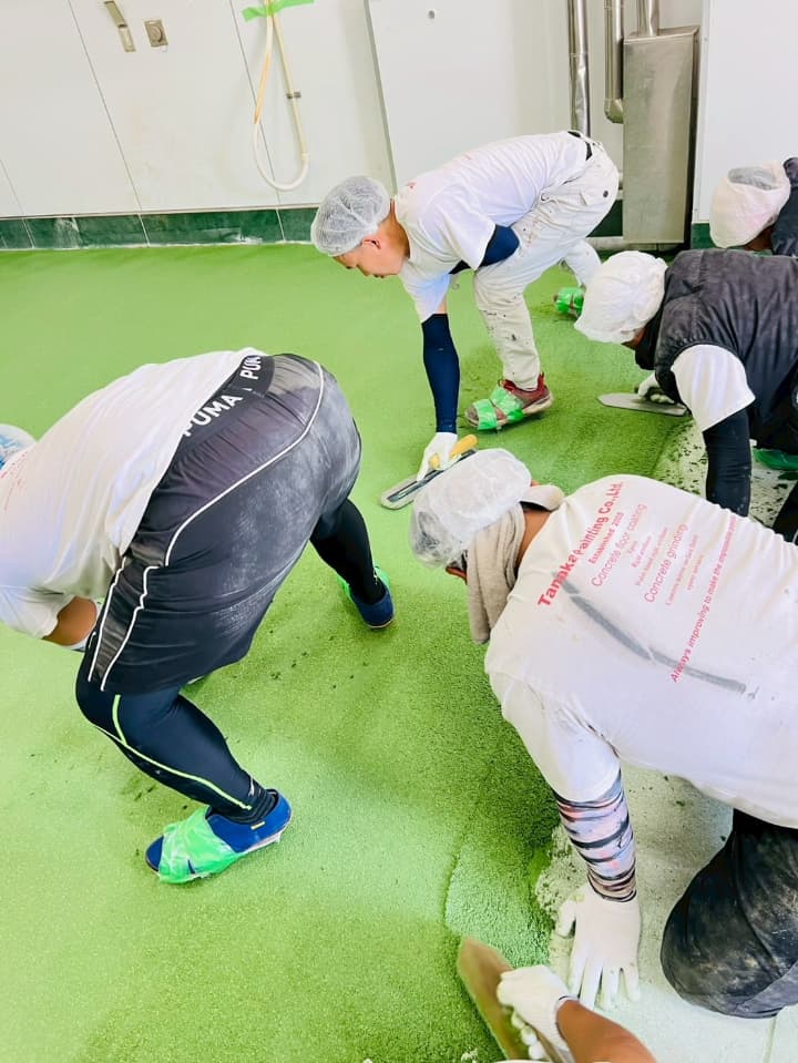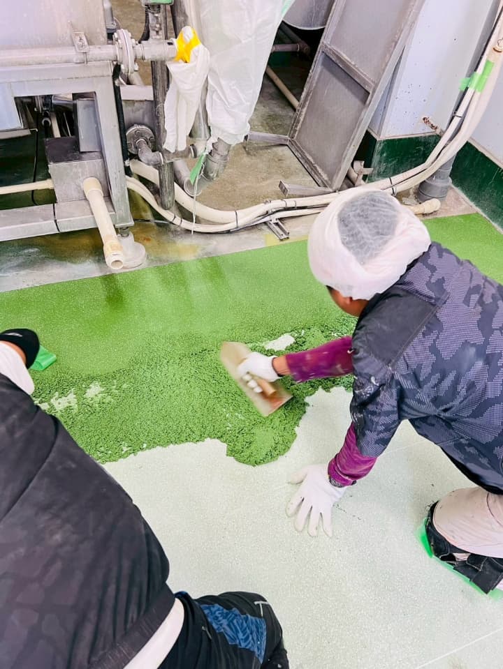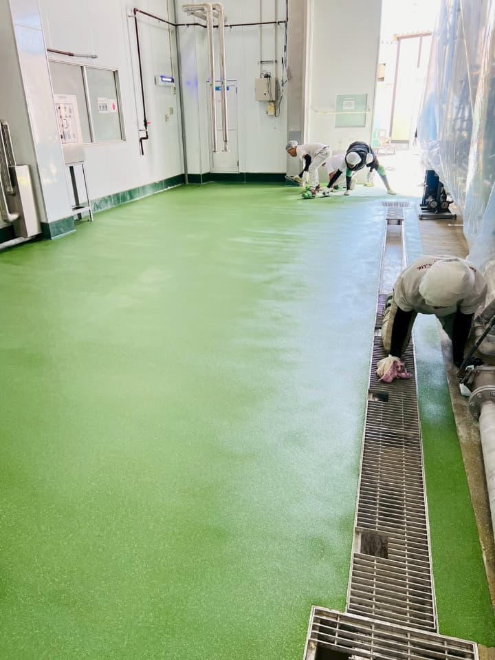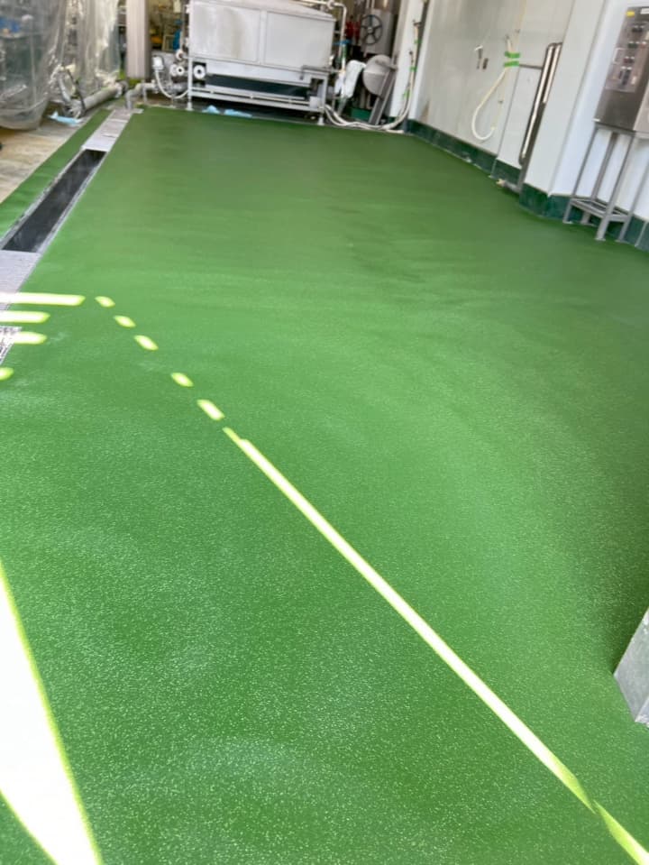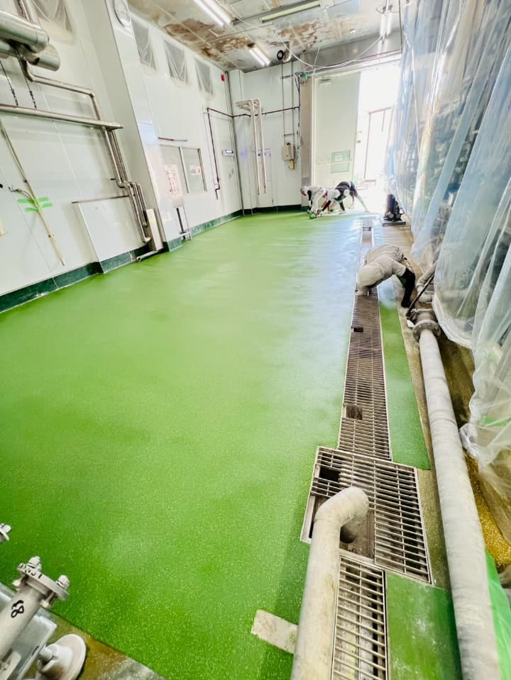 群馬県の食品工場様にて、ウレタンモルタル工法によるMMグリーン仕上げを行いました。