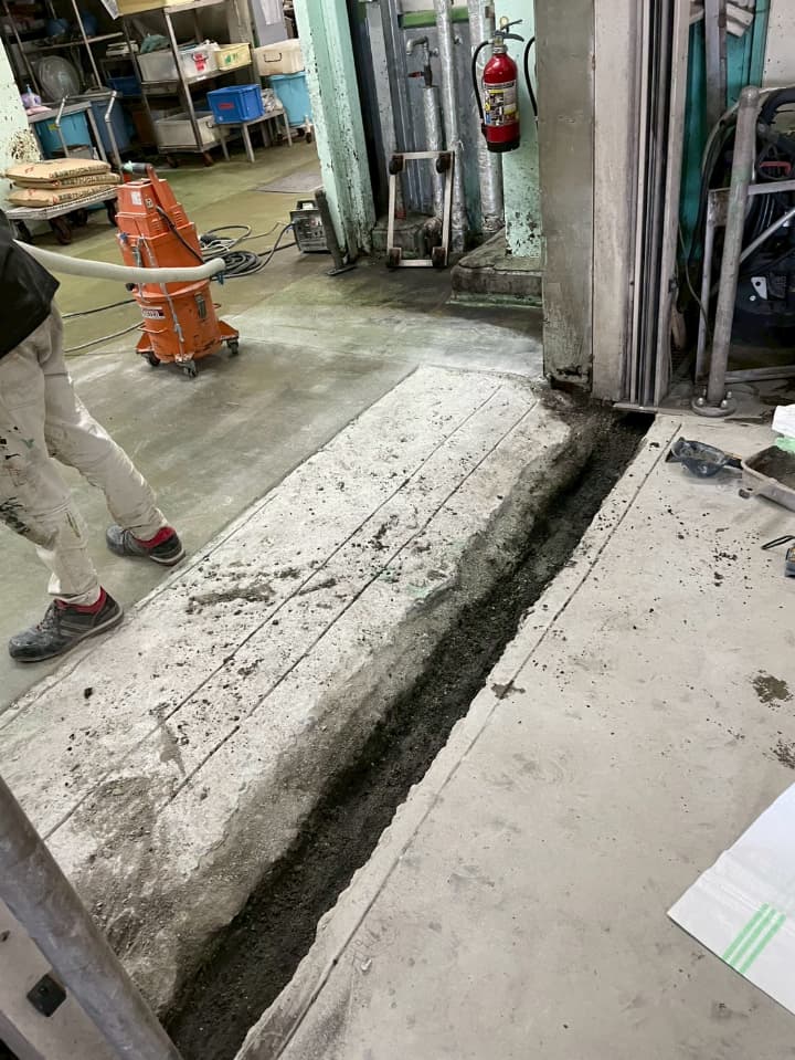 埼玉県にある食品工場様において、床改修工事を実施いたしました。工事には、ミルクリートMMを用いた水系硬質ウレタンモルタル工法を採用しました。