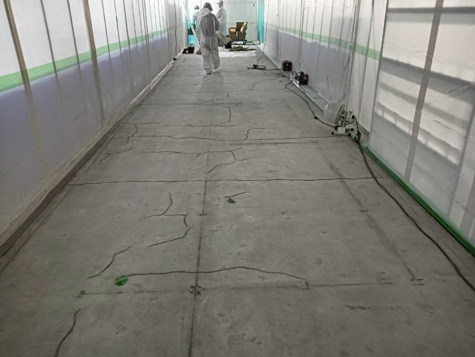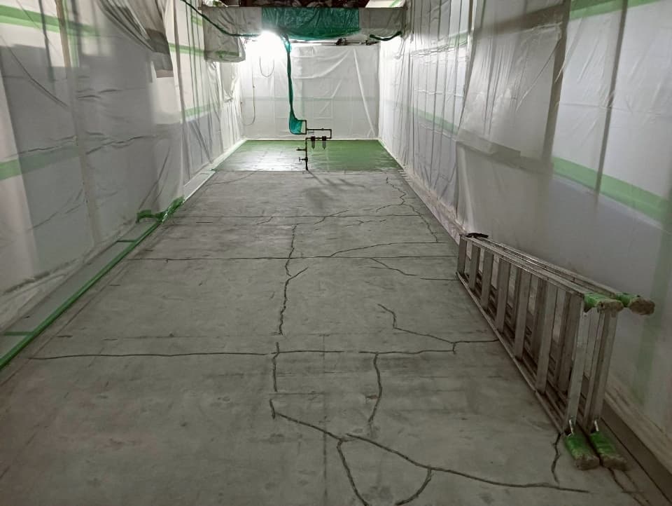 栃木県にある食品工場様にて、水系硬質ウレタンペースト工法(キューケン・ピュアクリートSL)を用いた床改修工事を行いました。汚れが付着しにくく、段差のないシームレスな床面に仕上げました。