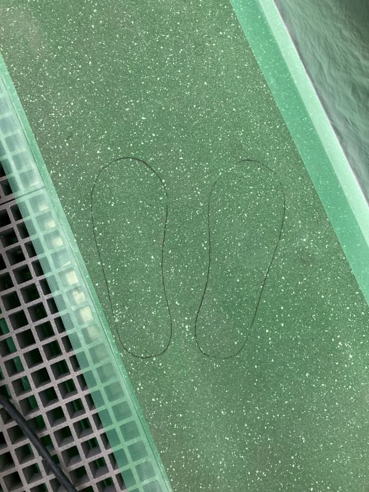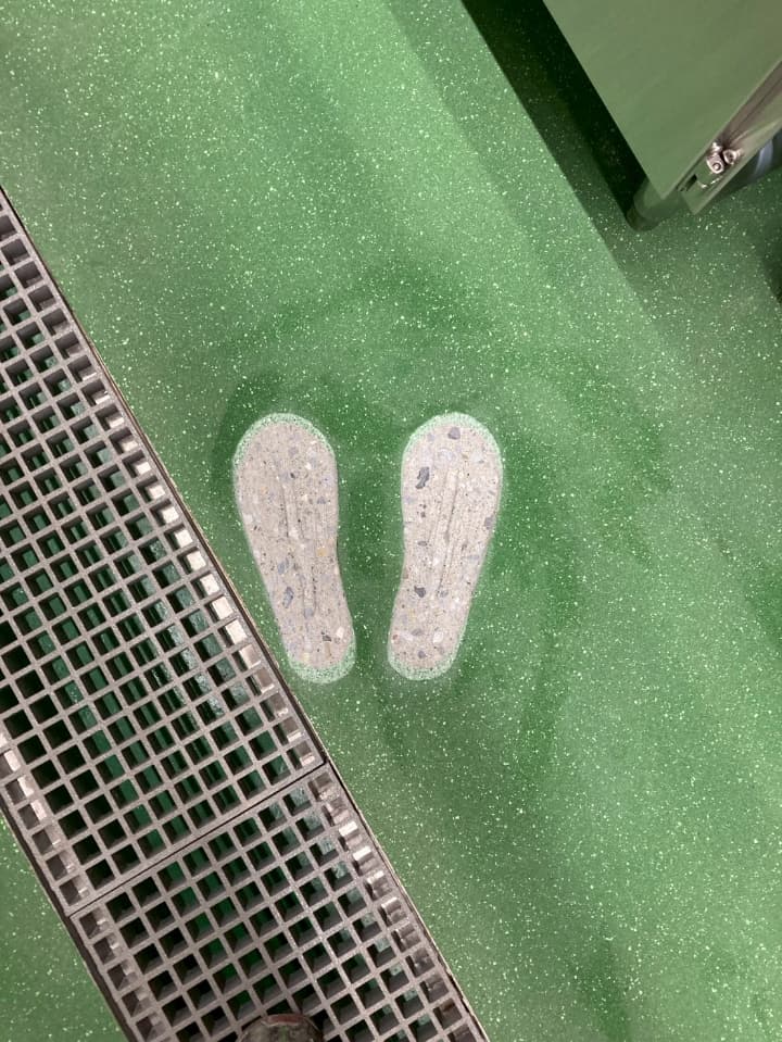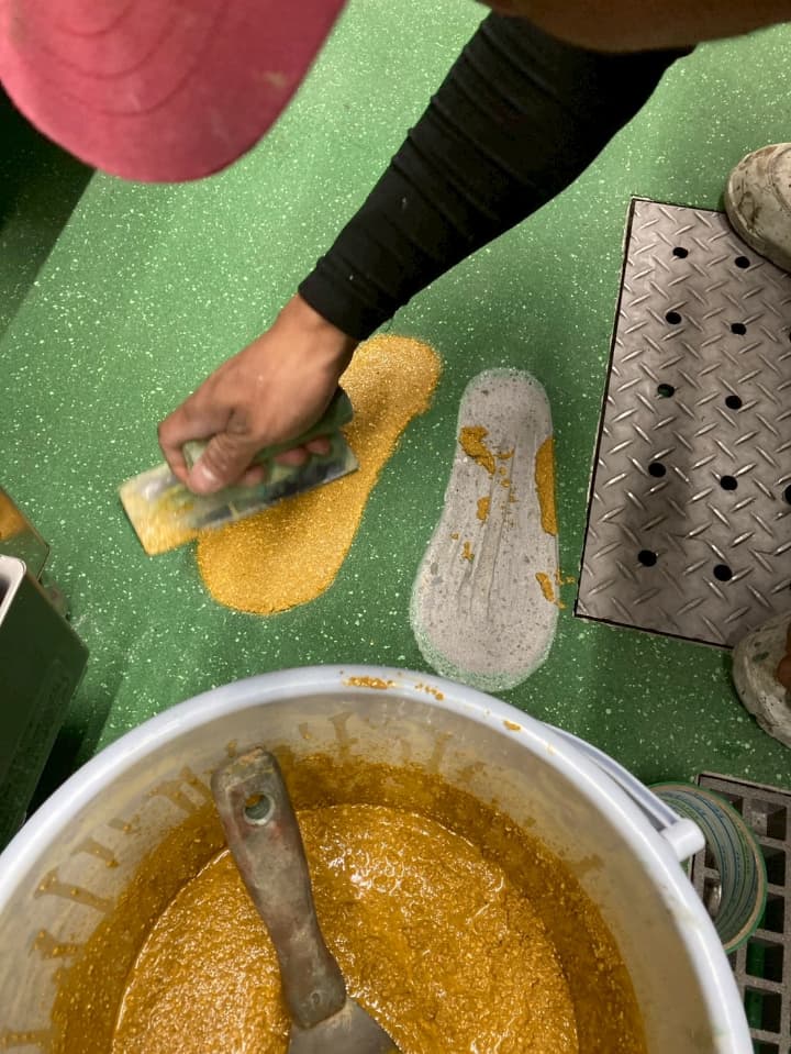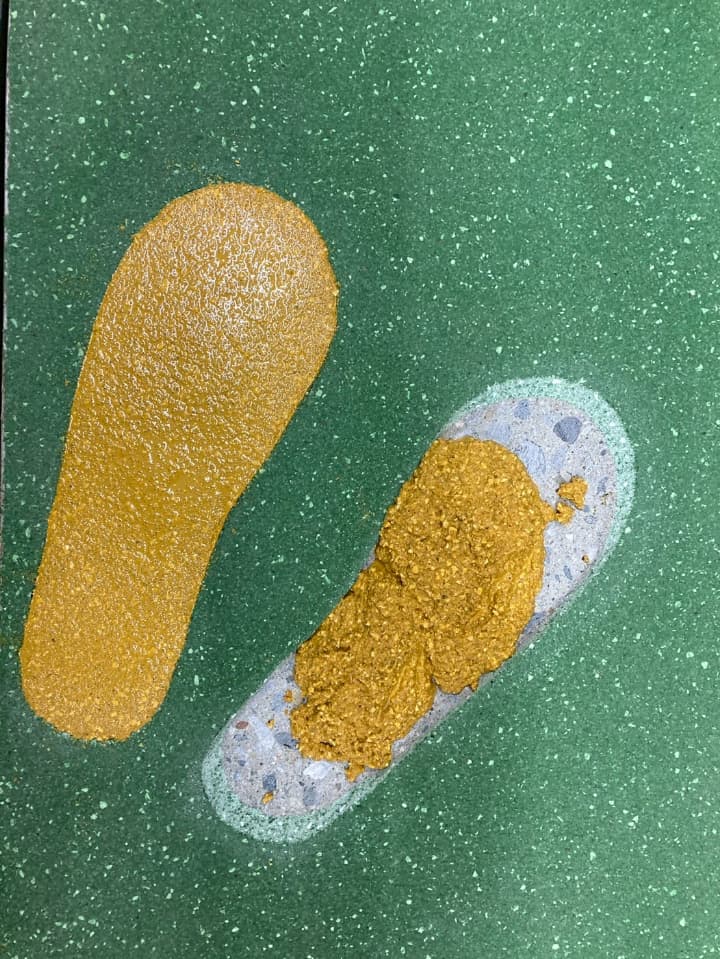 【工事内容】 足型塗り ミルクリートMMイエロー仕上げ