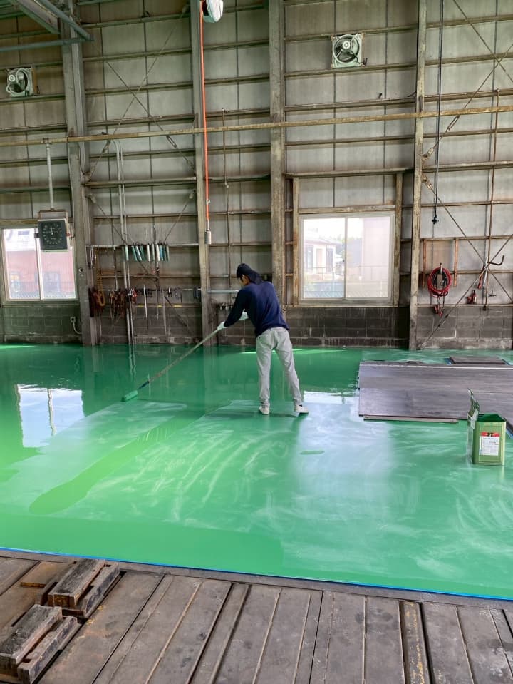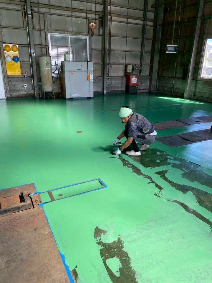 千葉県にある自動車整備工場様にて、床改修工事を実施いたしました。改修後の床は、整備工場特有の油や衝撃に対する耐久性を備え、安全で衛生的な作業環境の維持に貢献します。