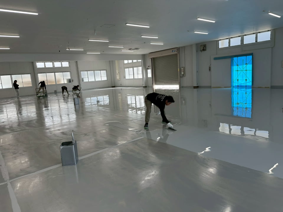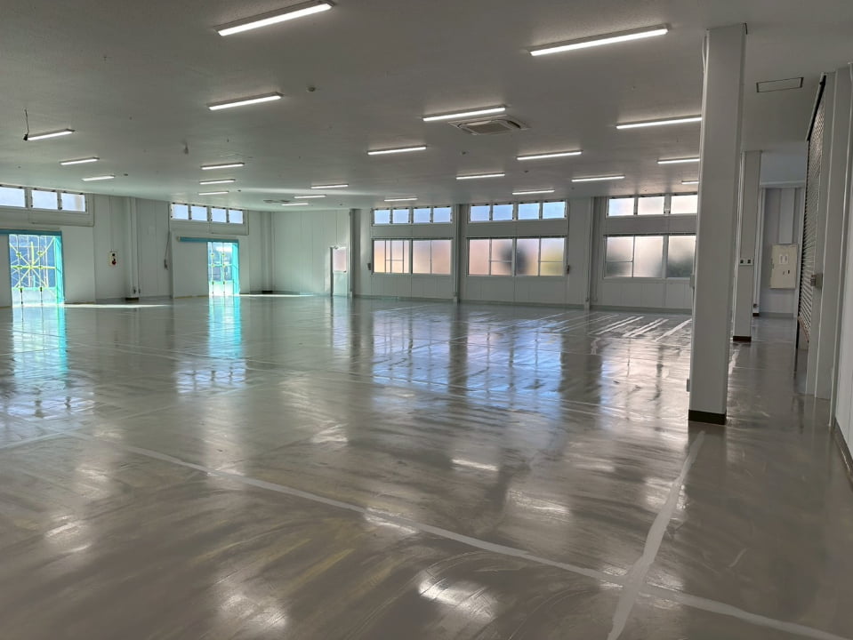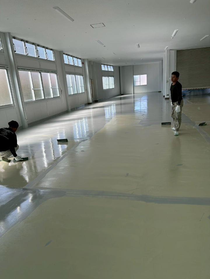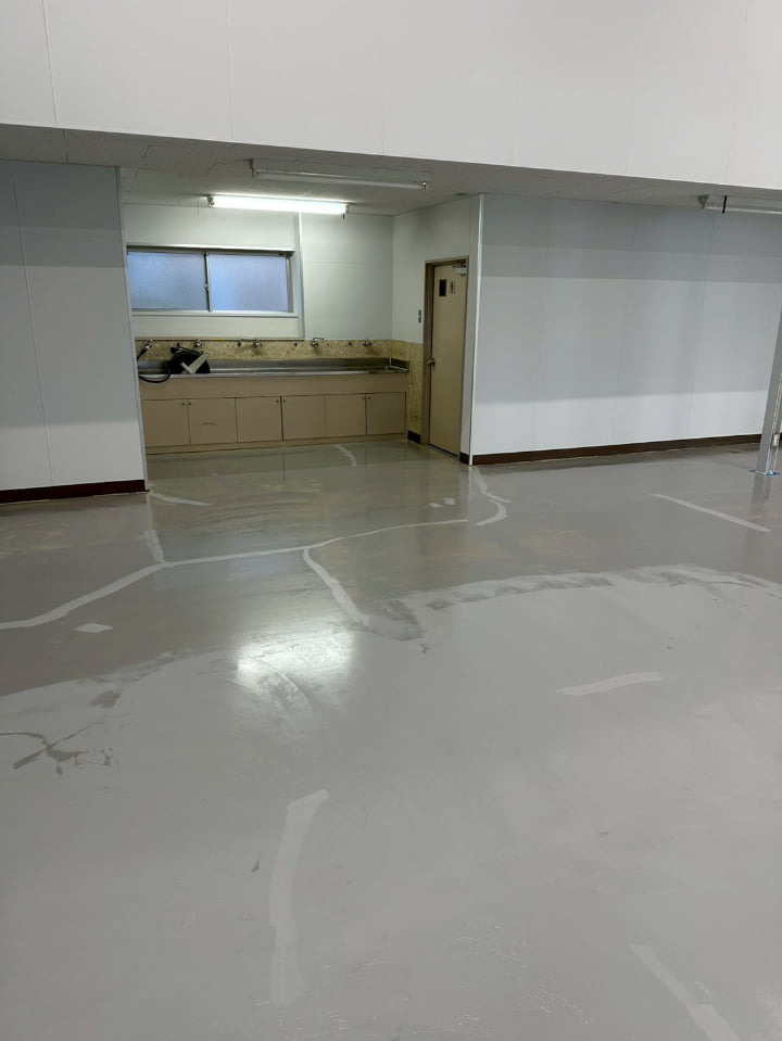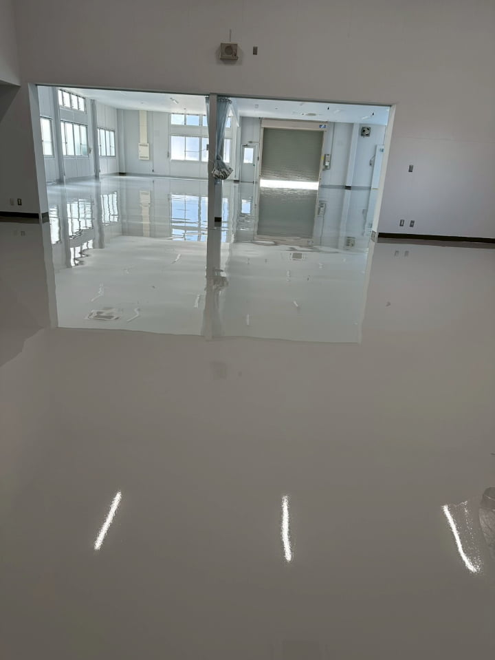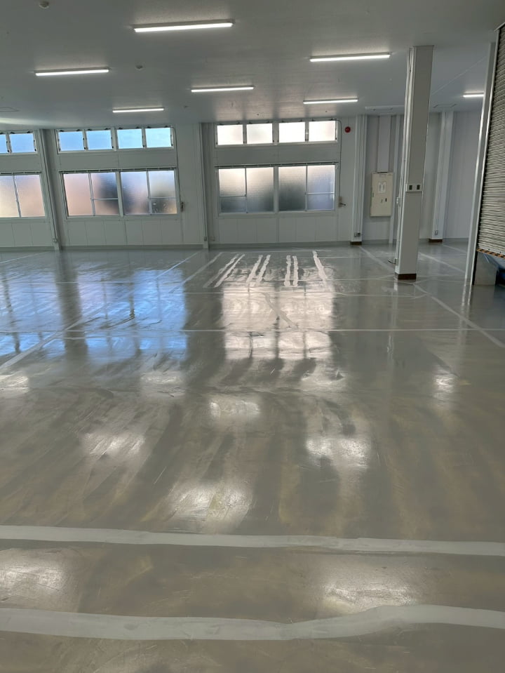 長野県にある倉庫様にて、エポキシペースト工法にて塗床工事を行いました。施工後の床面は平滑で美しく、良好な仕上がりです。