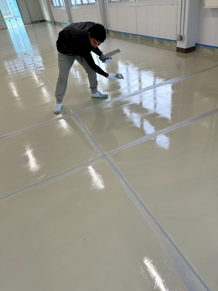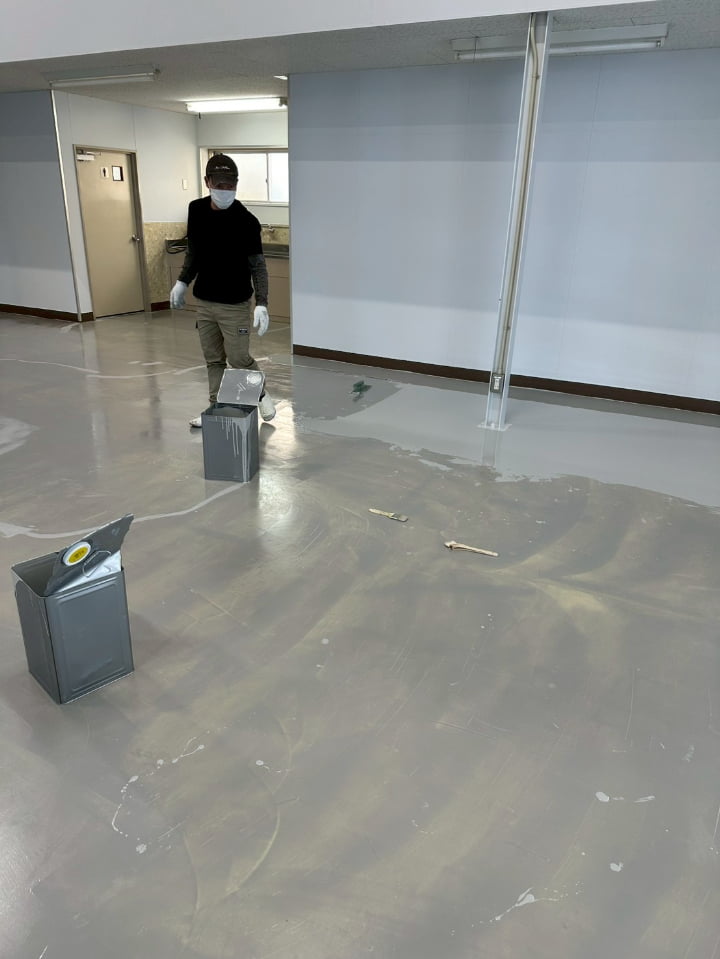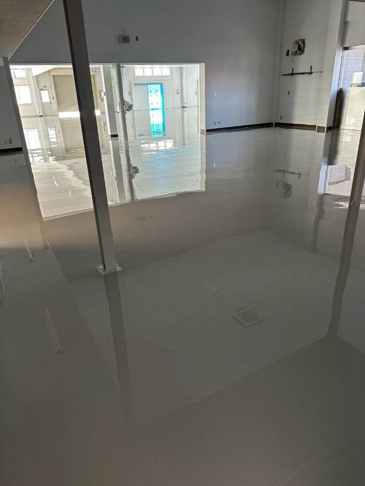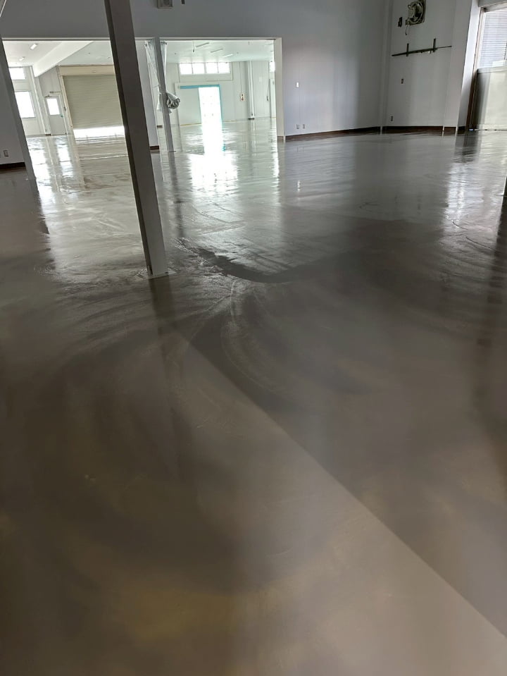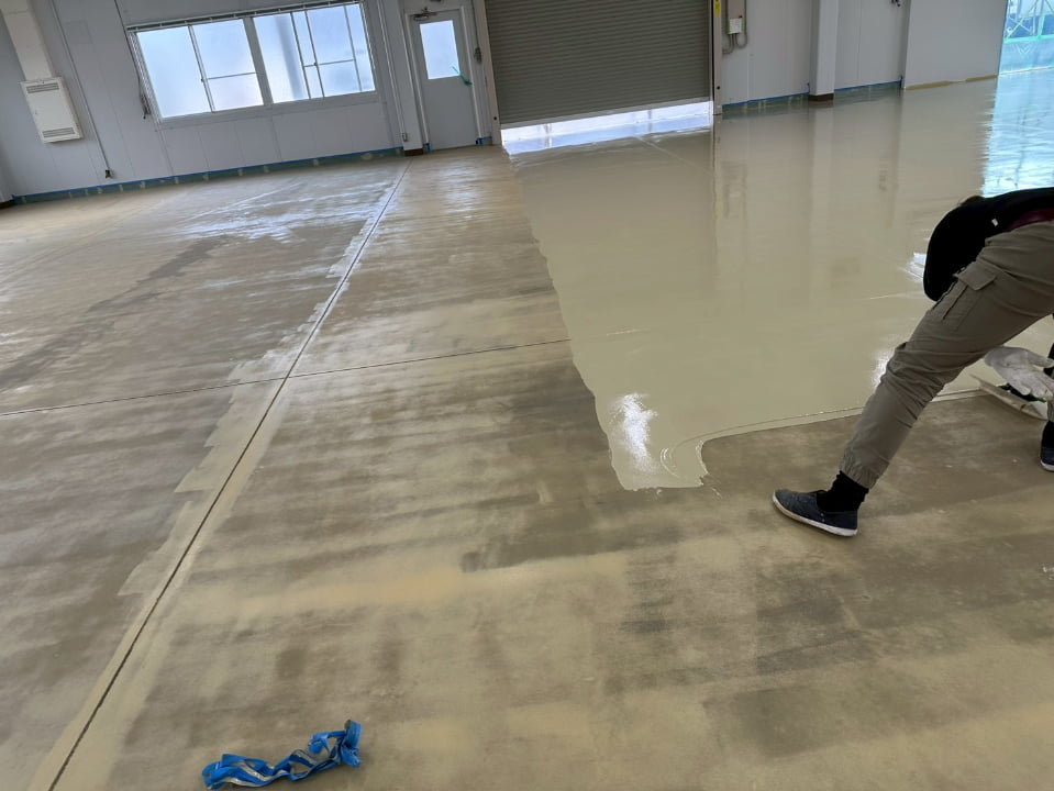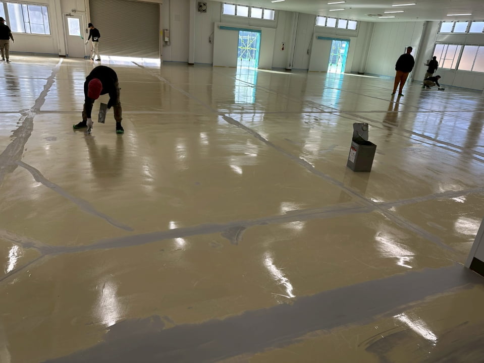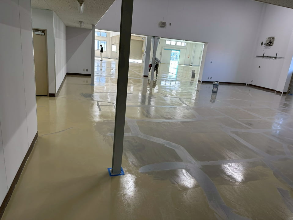 長野県にある倉庫様にて、エポキシペースト工法にて塗床工事を行いました。施工後の床面は平滑で美しく、良好な仕上がりです。