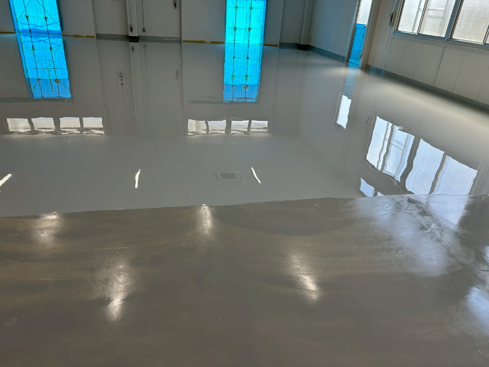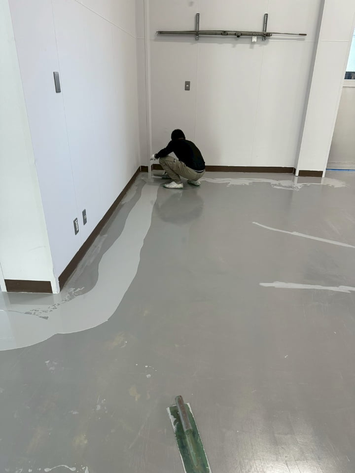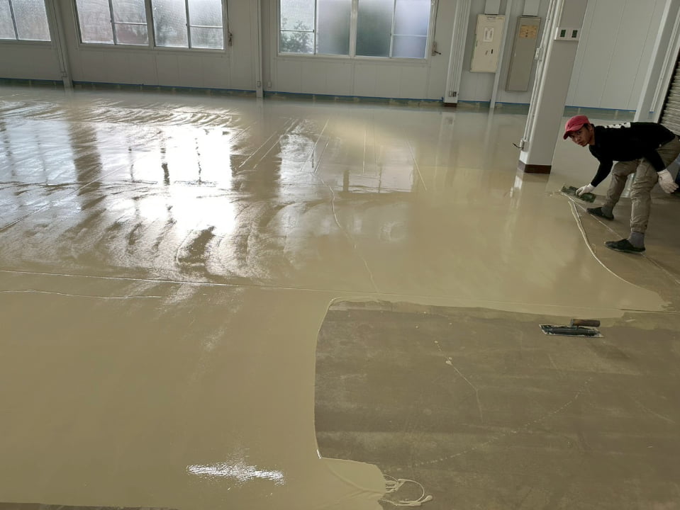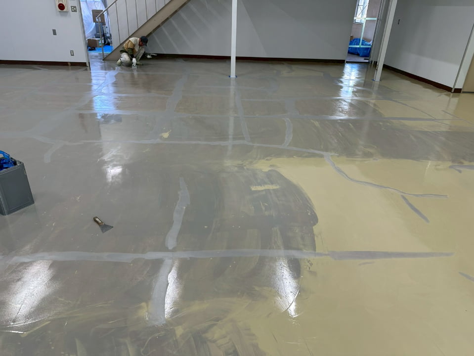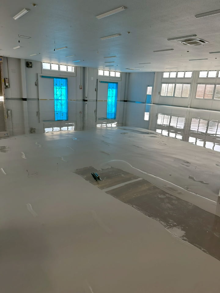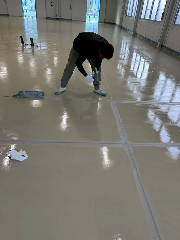 長野県にある倉庫様にて、エポキシペースト工法にて塗床工事を行いました。施工後の床面は平滑で美しく、良好な仕上がりです。