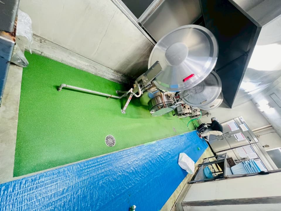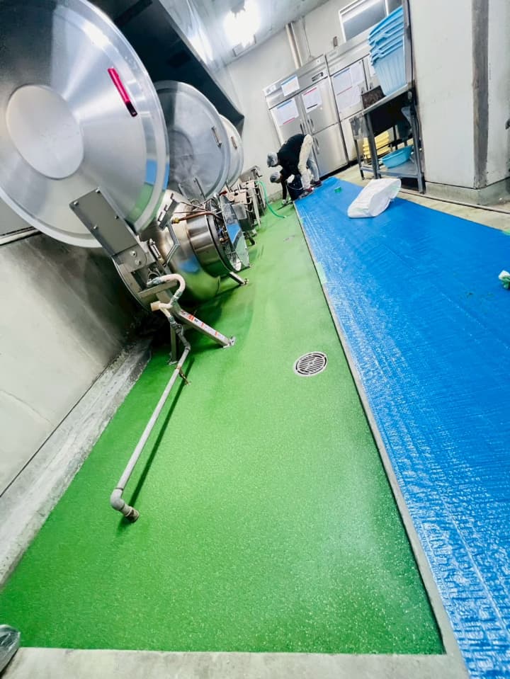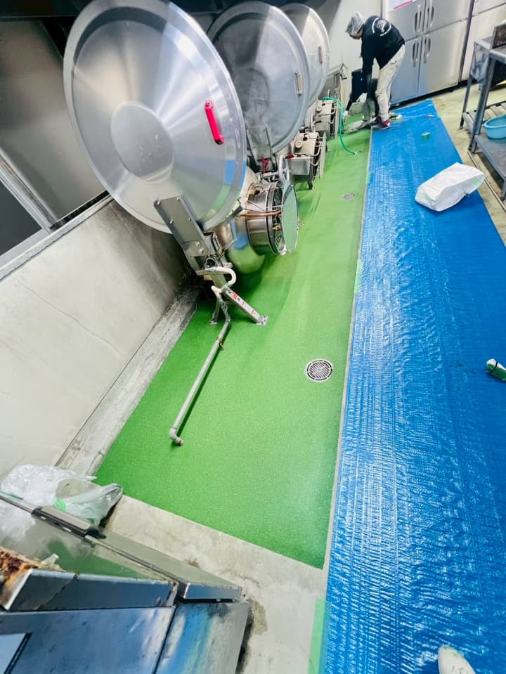 茨城県にある病院様にて、厨房の釜下床に、水系硬質ウレタンモルタル工法(ミルクリートMM)を用いた耐熱床工事を実施いたしました。厨房の長期的な安全稼働を支えます。