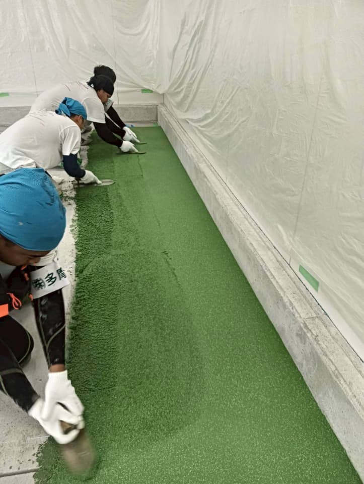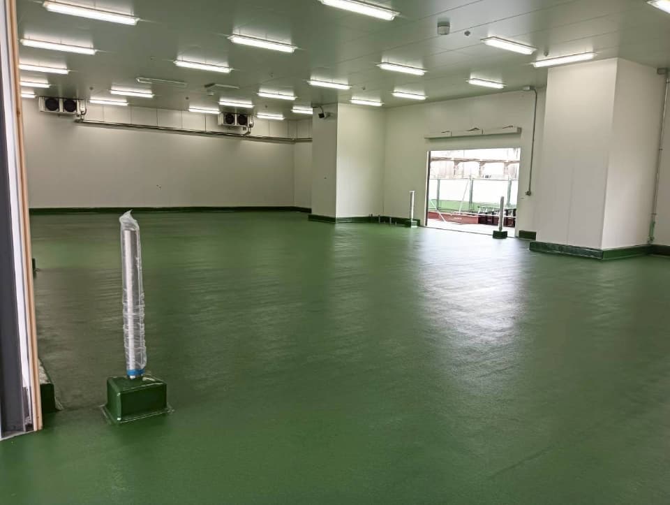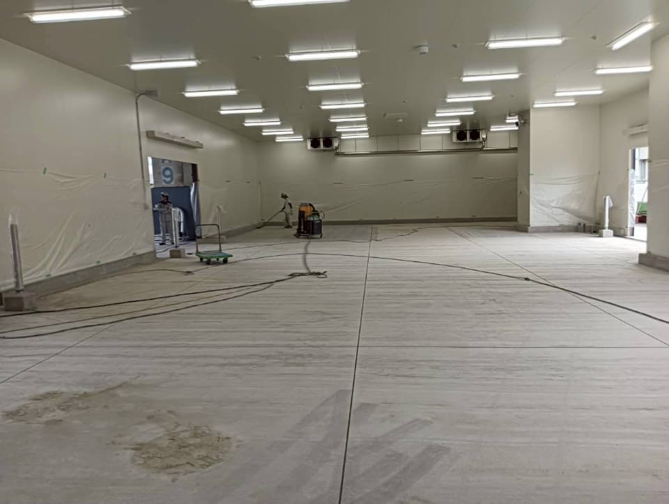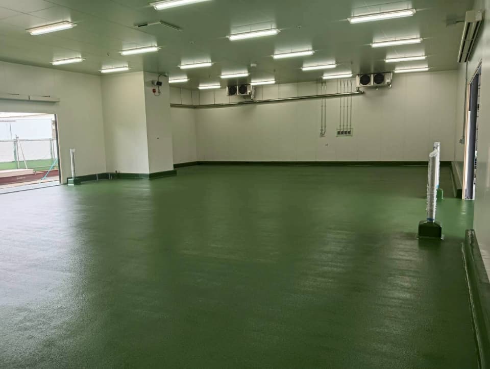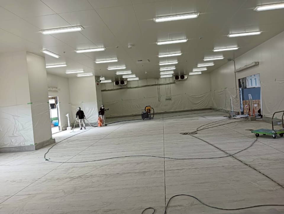 東京都の市場にて、水系硬質ウレタン(ミルクリートMM-R工法)による新築塗床工事を行いました。