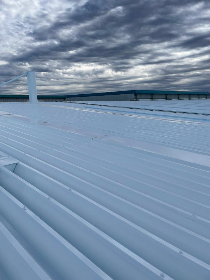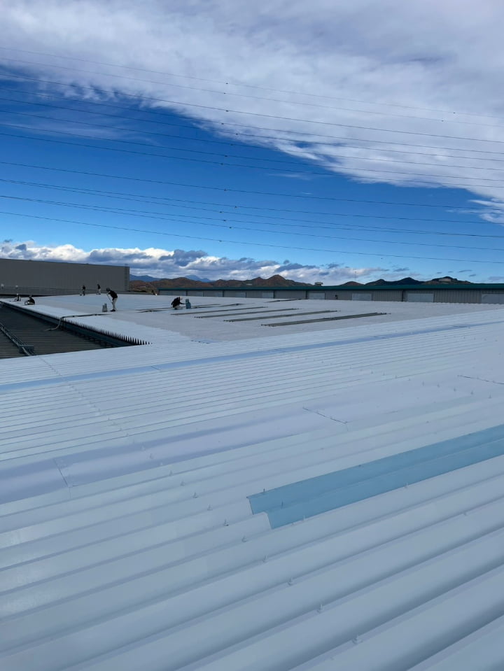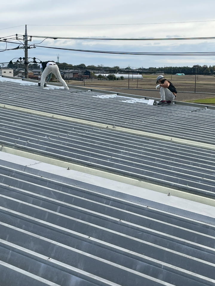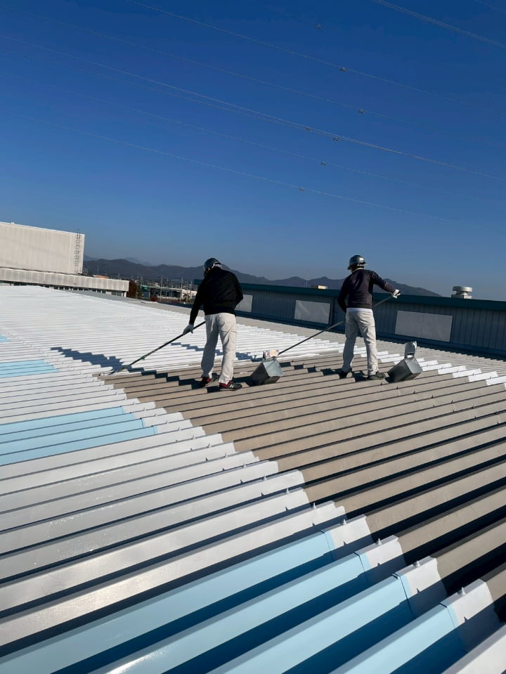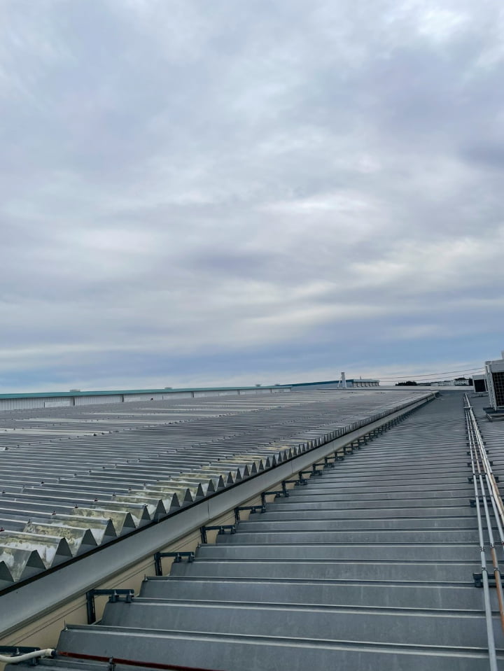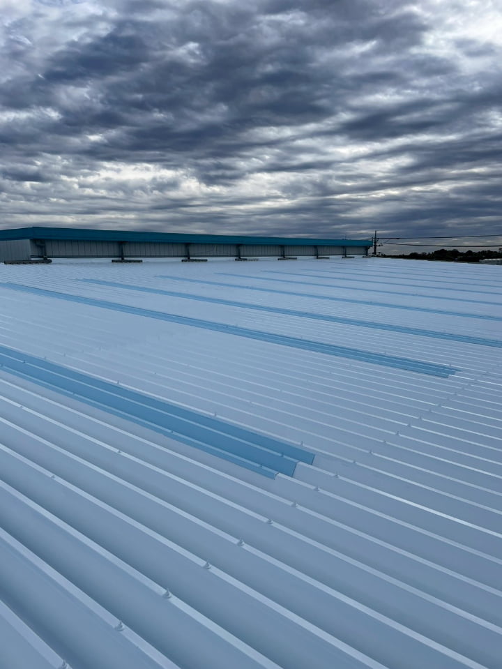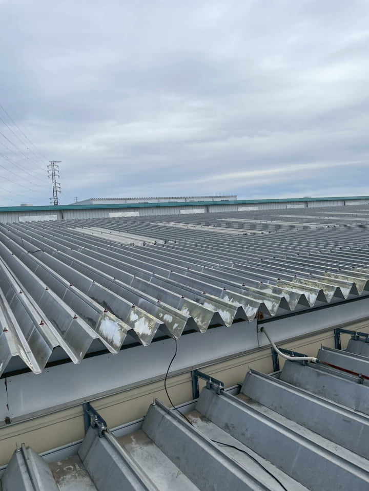 群馬県にある工場様にて、屋根の遮熱塗装を実施しました。高い遮熱効果を持つ「アトム遮熱バリアルーフ」を採用し、屋根表面温度の上昇を防ぎ、空調負荷に貢献します。